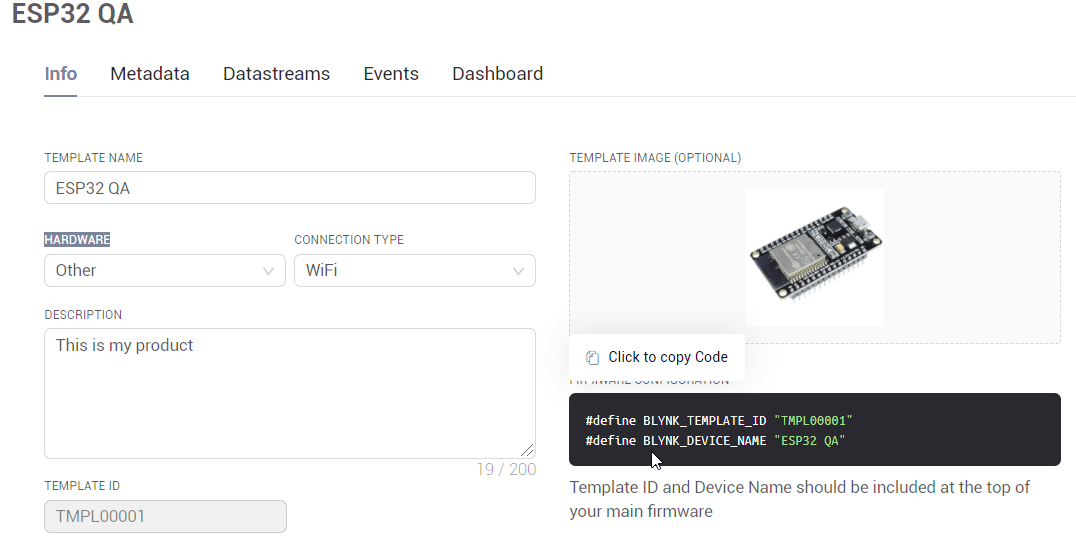 Double-check that Template ID is defined in the sketch. You can always find the TemplateID in Blynk.Console →Template → General Settings