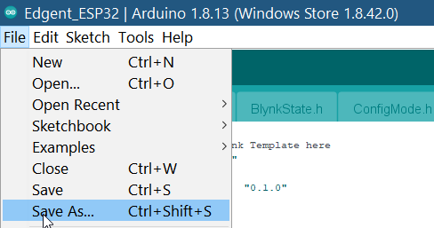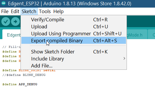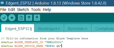 In Arduino IDE open the Blynk.Edgent example sketch for your board.