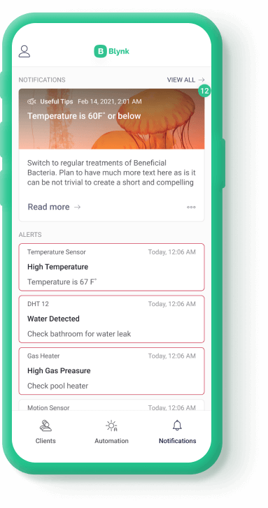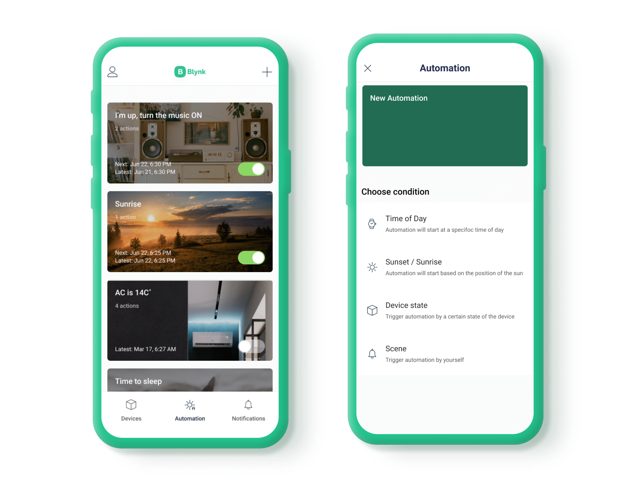 It's focused on devices, automations and notifications view and management with the help of widgets and additional screens containing specific information about data that is set/sent/received to/from Blynk.Cloud and devices.