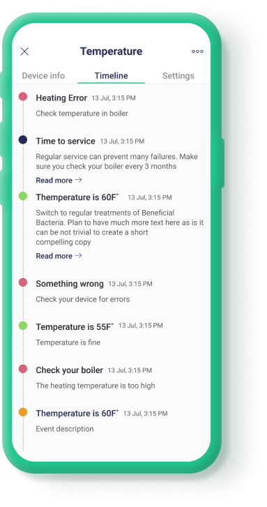 On the Timeline tab, you'll find the list of all events of the device (for example online, offline and custom Events)