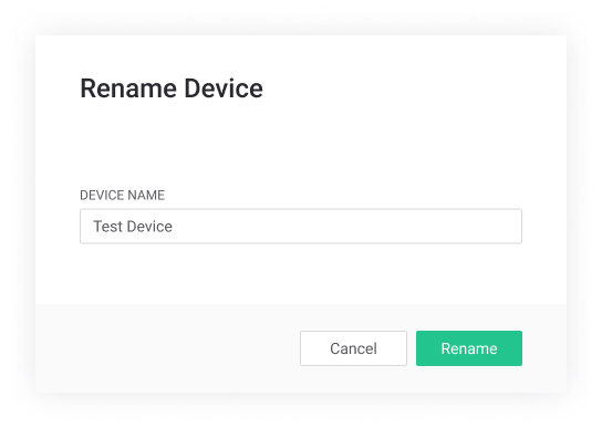 Opens Rename Device modal window. Input new name up 60 characters here. Confirm.