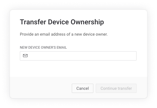 Every device has an owner. Usually, the device owner has more access over the device than other users. However, this is fully configurable over view own devices and view organization devices permissions. To change the ownership, device transfer action is used.