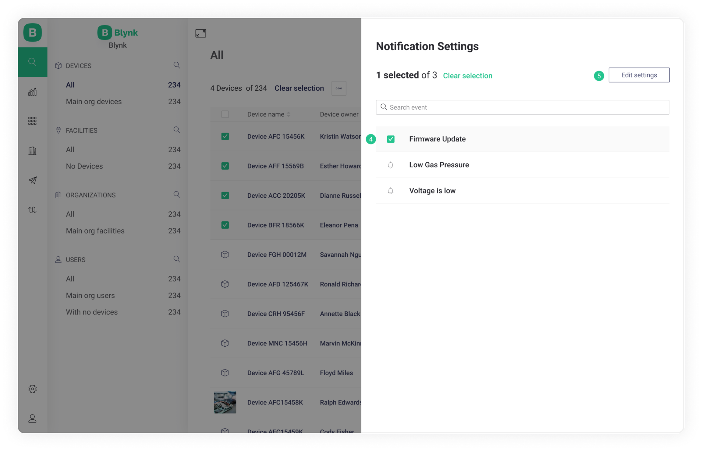 How to set up notifications for a single device or for a selection of devices.