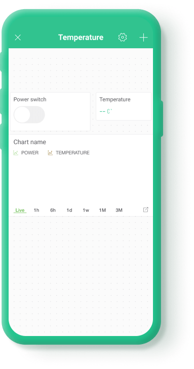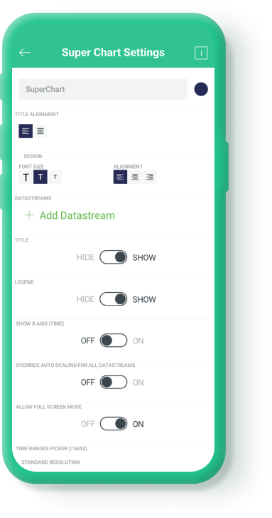 Now choose a SuperChart widget, set up 2 datastreams for example for power and temperature.