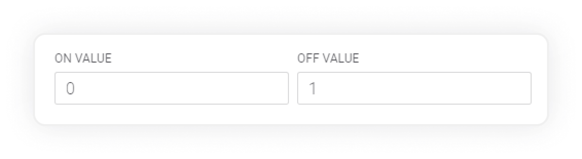 Set to Integer data type, connected to Virtual Pin 0 (V0). In Blynk.Console we’ll leave the values set to 0 and 1, so the widget sends a 0 when it’s turned off, and a 1 when it’s turned on - like this:
